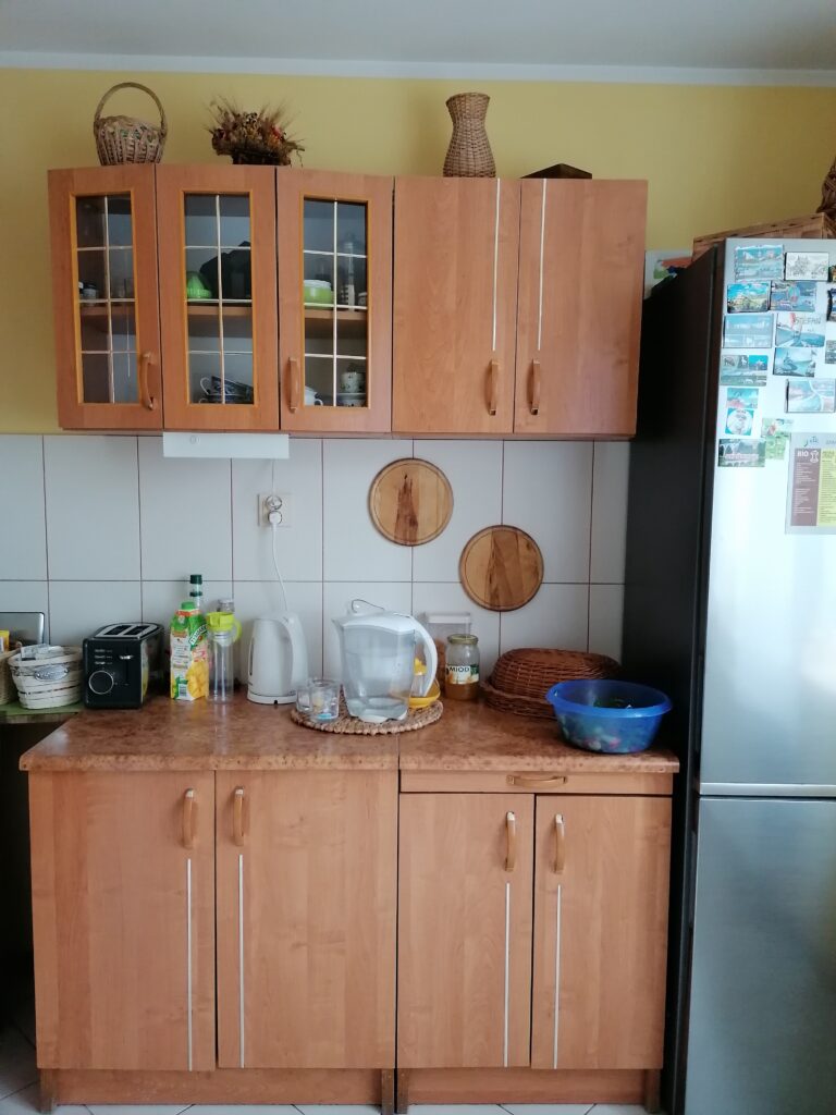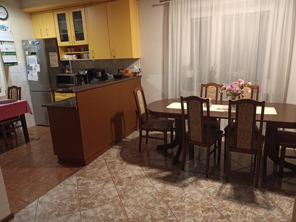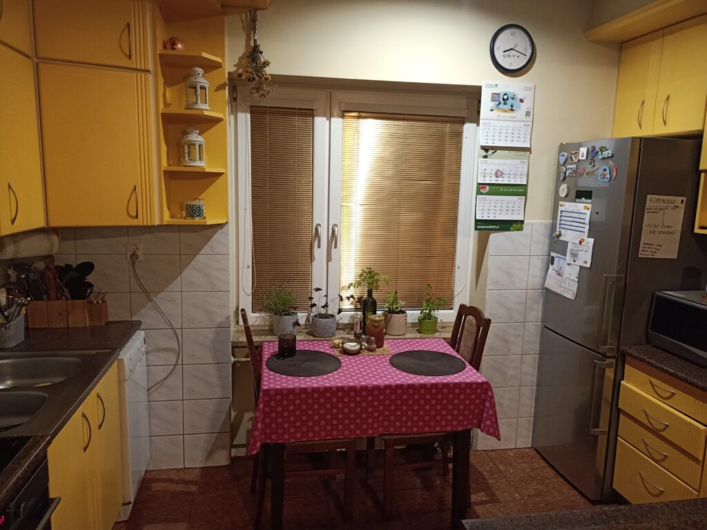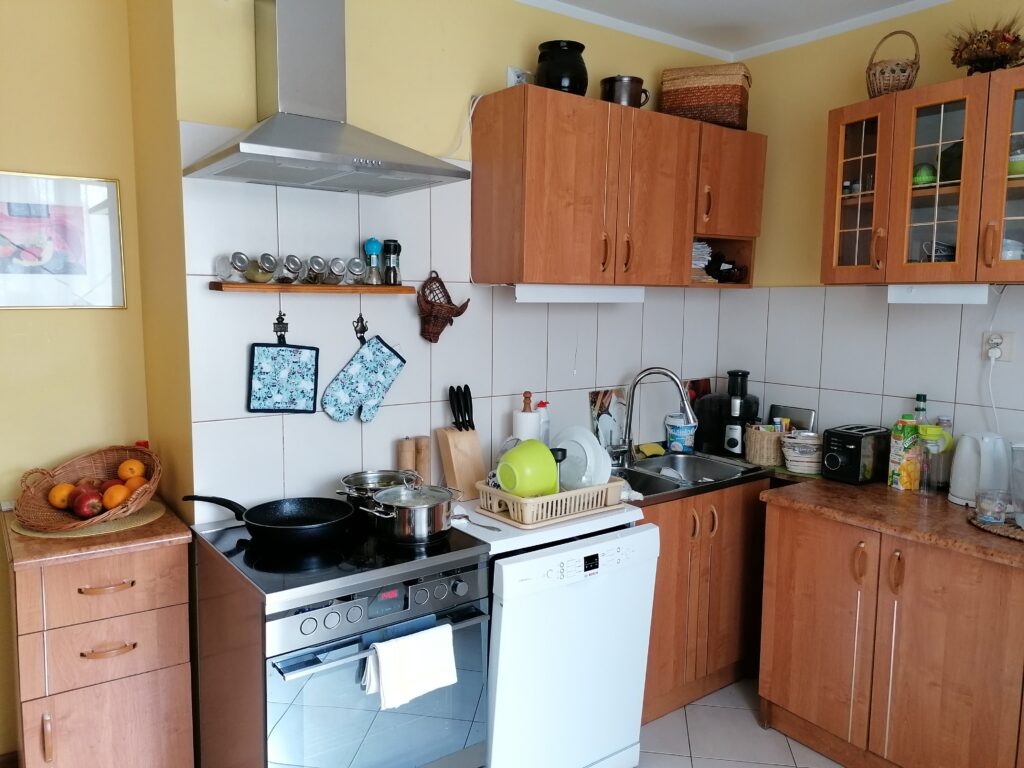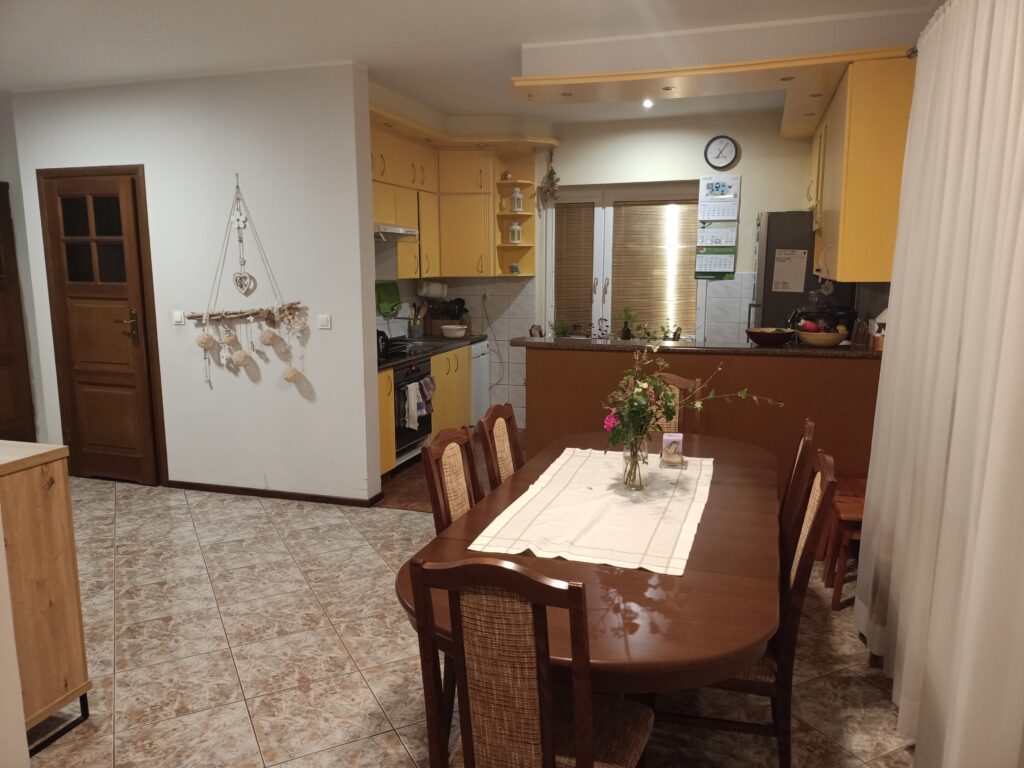- Funkcjonalność: Kuchnia dla dwóch osób z możliwością ugoszczenia dużej rodziny.